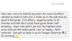 The individual feel to coaching makes it worth it from very early on. I've now learnt that although I was putting in the time and effort before, I was just wearing myself out and not training smart. I've noticed a difference in my performance almost instantly, I feel much more confident that my running won't hold me back anymore.